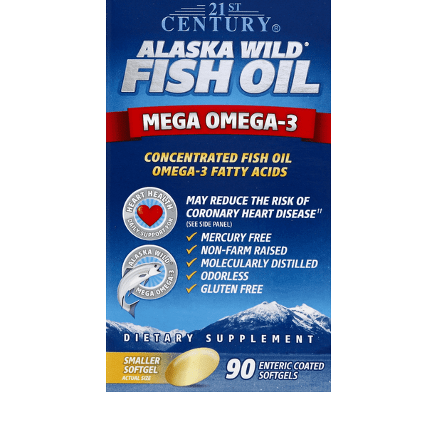 21st Century Alaska Wild Fish Oil Omega-3 Fatty Acids Dietary Supplement Coated Softgels
