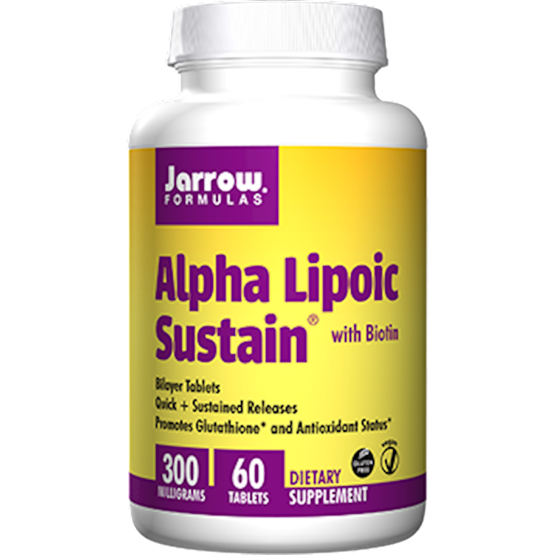 Alpha Lipoic Sustain is in a special Sustain bilayer Quick Release/Sustained Release format to maximize and sustain blood levels and to minimize gastric irritation and blood sugar fluctuations.* Alpha Lipoic Acid is a unique lipid and water soluble antioxidant that is a co-factor in glucose metabolism and energy production.* ALA also promotes the synthesis of glutathione, a critical component of the bodys endogenous antioxidant network.* Biotin is added for optimum ALA activity.* The advanced bilayer Sustain tablets combine 1/3 Quick Release and 2/3 Sustained Release formats to both immediately raise and to maintain blood levels over a longer period of time.