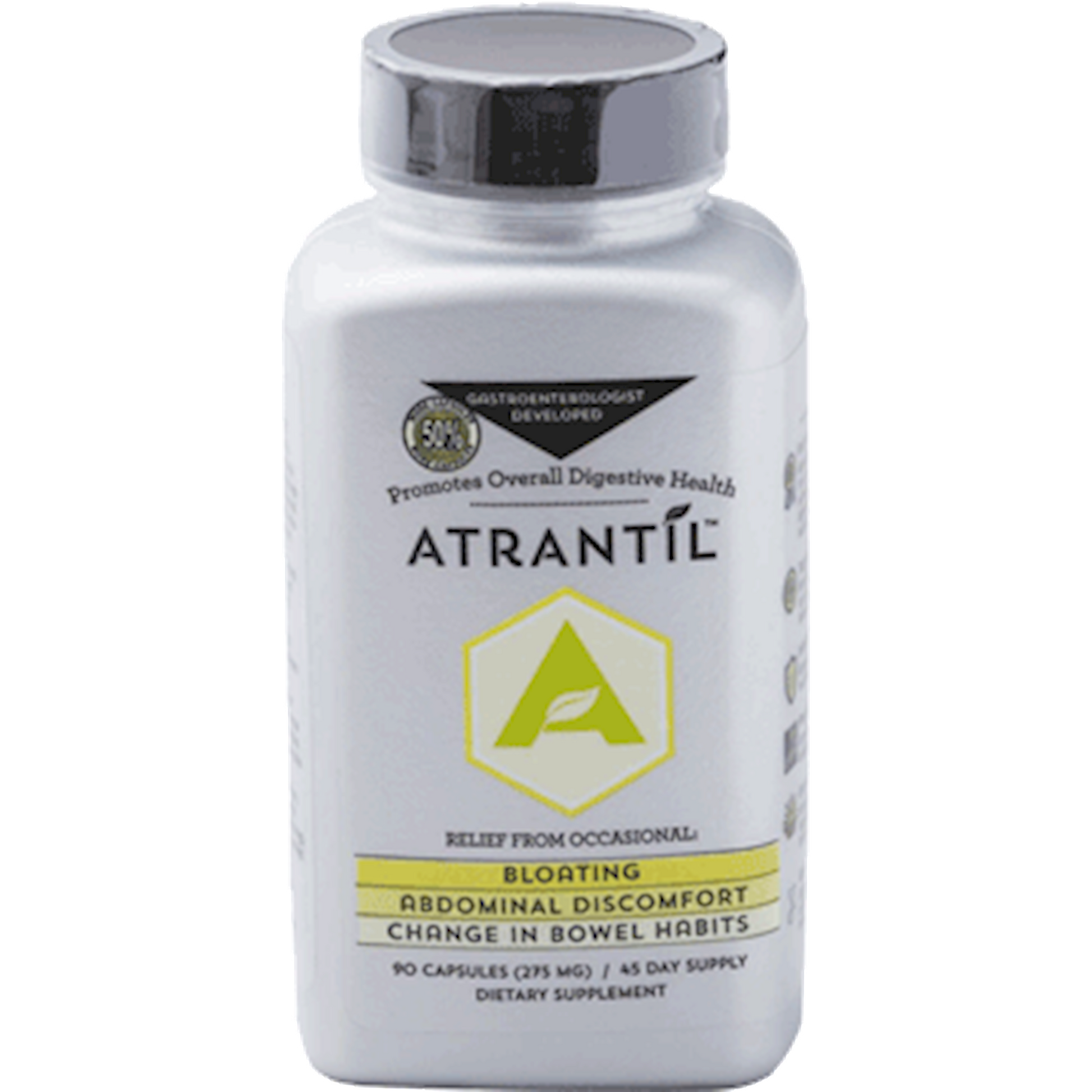 Atrantil was researched and created by a board certified gastroenterologist to provide overall digestive health and successfully help those suffering from Bloating and Abdominal Discomfort. Atrantil delivers daily relief while providing safe and reliable bowel support.* Atrantil is a One of a Kind botanical blend of polyphenols to help those suffering from Bloating and Abdominal Discomfort while protecting overall digestive health.* Stay Healthy Over 80% of the immune system is in the gut. Gut microflora balance is essential to good health. Atrantil contains essential flavonoids and polyphenols, helping the body maintain its balance.* Have Confidence Atrantil is Gluten-Free, Non GMO and Vegan delivering only the purest ingredients and best in manufacturing.