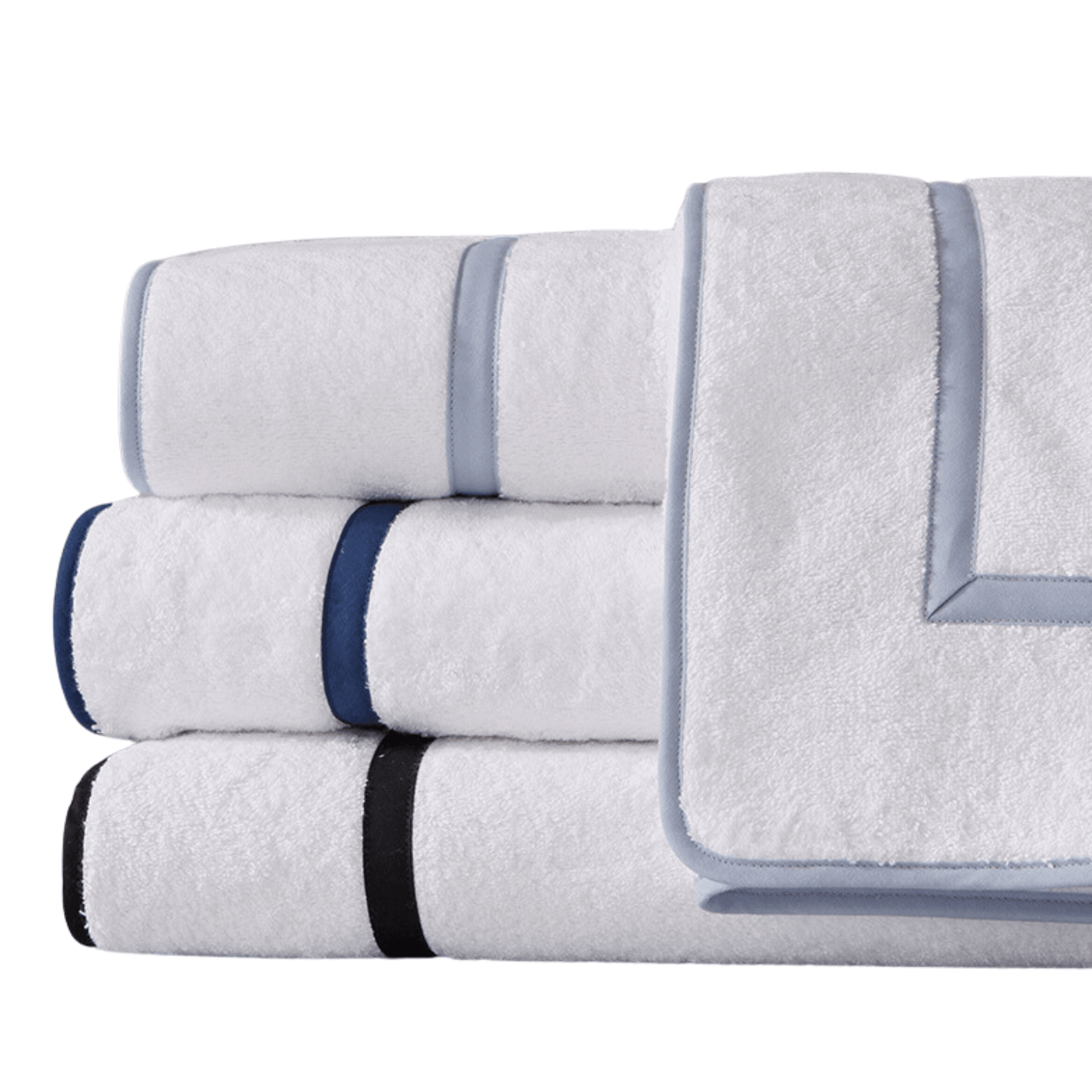 The Avon Roma Terry Bath Towels are finished with a single row of appliquéd tape and a modern trim! These beautiful and elegant towels are truly the perfect staple pieces for your powder room.