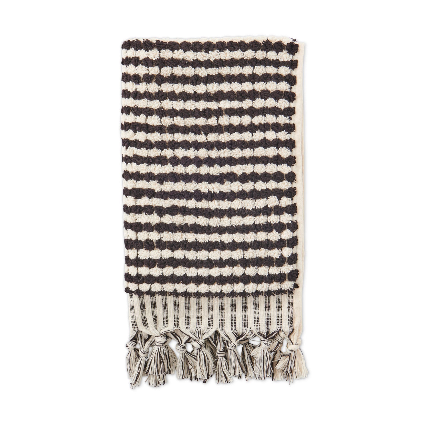 The Black & White Pebbles Turkish Hand Towel is a luxe basin side accessory. Wonderfully soft and absorbent this towel features a pebbled black and natural creamy white pattern with self-knotted fringe edge. Create a complete set with matching bath towel and mat for a beautifully styled bathroom.