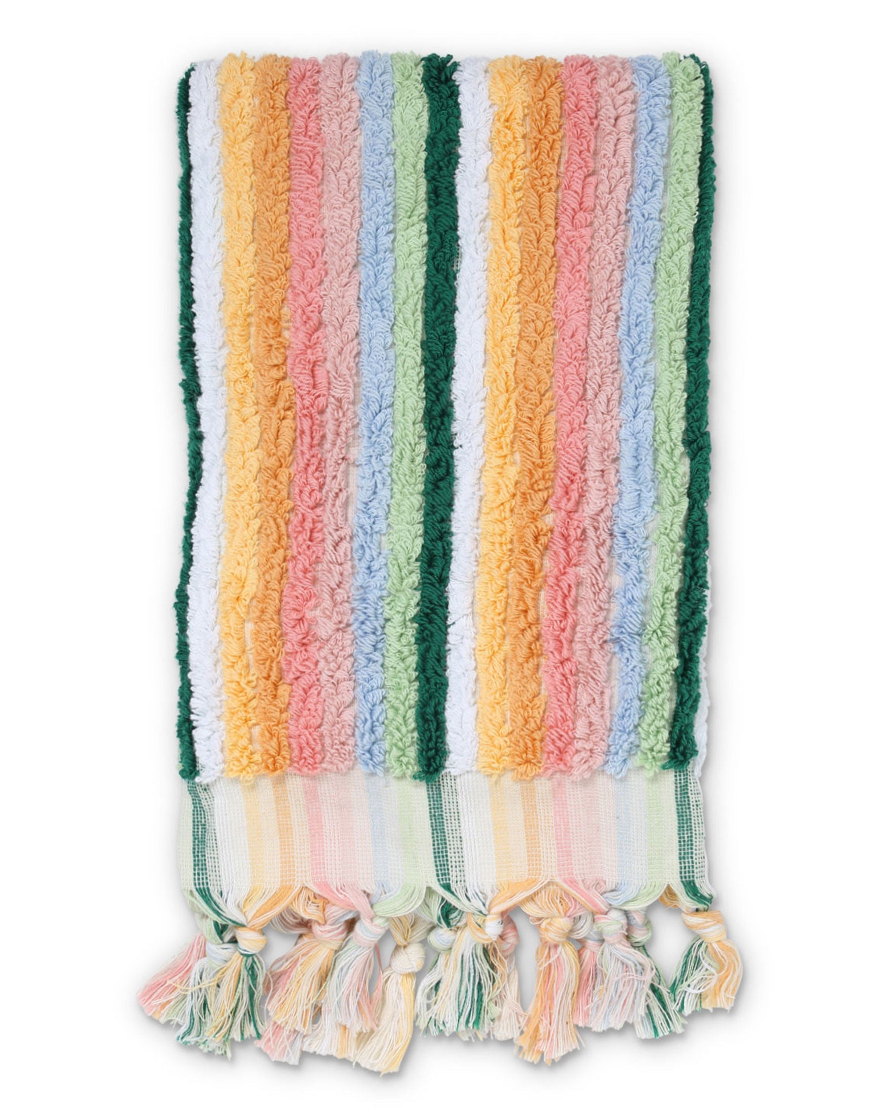 The Stripes Colourful Turkish Hand Towel is a colour lover's dream! Made from 100% hand loomed cotton and featuring chunky stripes in a rainbow of colours, this hand towel is both luxuriously soft, and a treat for the eyes. Pair this basin side beauty with matching Stripes Colourful Turkish Bath Towel and Bath Mat to create a spectacularly vibrant bathroom set.